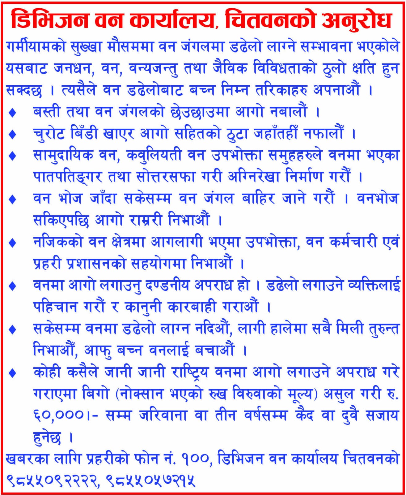 चितवन / गणित शिक्षा परिषदको १५औं साधारणसभा तथा ८औं अधिवेशन सम्पन्न भएको छ । अधिवेशनले [...]