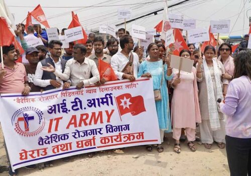 बैदेशिक रोजगार पीड़ितलाई न्यायको माग गर्दै आइटी आर्मीको प्रदर्शन