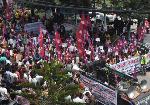 कबाड व्यवसायीको काठमाडौँमा प्रदर्शन, बालेनविरुद्ध नाराबाजी