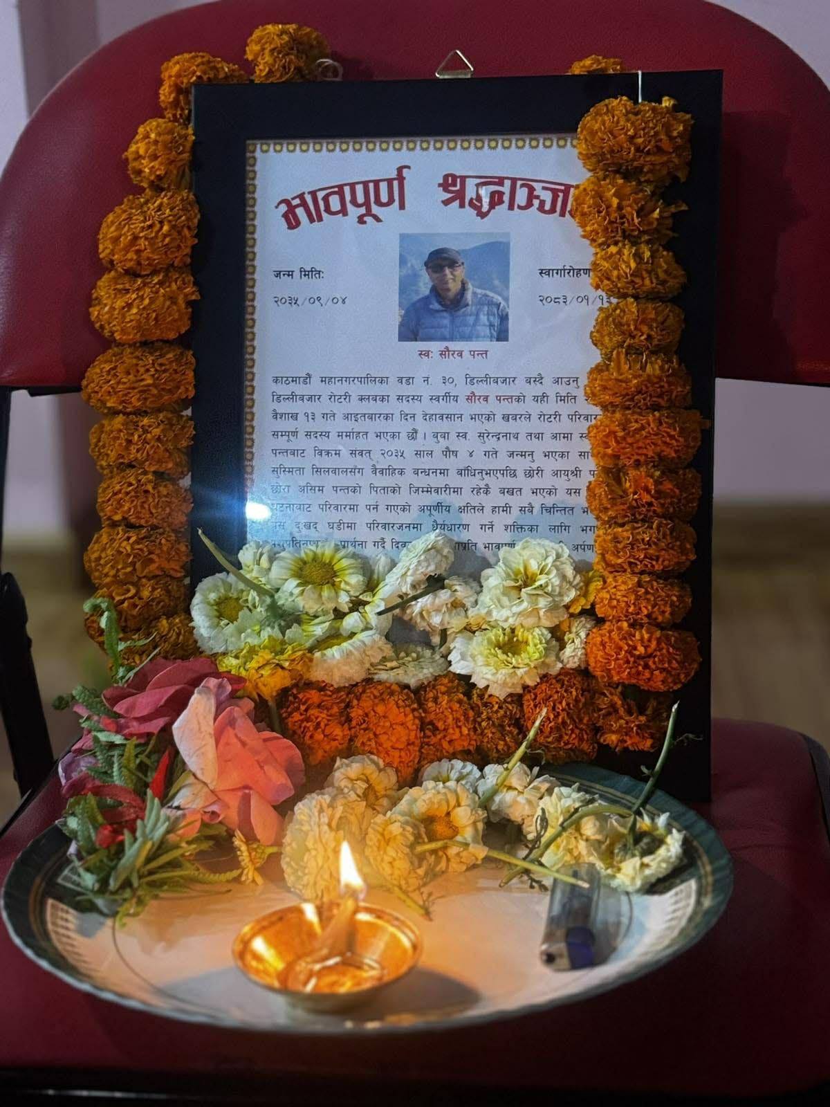 रोटरी क्लब डिल्लिबजारद्वारा स्वर्गीय रोटरियन सौरव पन्तप्रति श्रद्धाञ्जली अर्पण