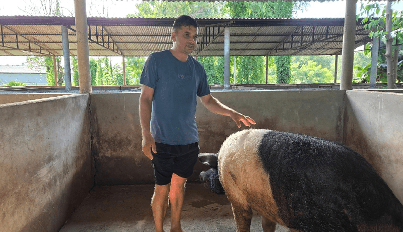 सुनसरी । गत शुक्रबारदेखि लगातार परेको अविरल वर्षापछि सर्दु–सेरा खोलामा आएको बाढीका कारण रामधुनी नगरपालिका–८ स्थित झुम्का अर्गानिक कृषि फार्ममा क्षति पुगेको छ । बाढीका कारण फार्ममा रहेका २०० भन्दाबढी सुँगुर बगाउँदा करिब रु ८० लाखभन्दा बढीको क्षति भएको फार्म सञ्चालक भरत कार्कीले बताउनुभयो । मलेसियामा तीन वर्ष काम गरेर फर्किएपछि कार्कीले विसं २०७४ मा फार्म सञ्चालन गर्नुभएको हो । करिब चार बिघामा फैलिएको फार्मममा १६ जनाले रोजगारी पाइरहेका छन् । उहाँका अनुसार फार्ममा ३०० भन्दा बढी सुँगुर थिए । शनिबार रातिको बाढीले ठूला माउ सुँगुरदेखि साना बच्चासम्म गरी २०० भन्दाबढी सुँगुर बगाएको उहाँको भनाइ छ । फार्ममा अहिले करिब ७० वटा सुँगुर बचेका छन् । बच्चा सुँगुरमध्ये ४० भन्दाबढी पानीमा डुबेर मरेका छन् भने मासु उत्पादनका लागि तयारी अवस्थामा रहेका सुँगुरहरू बाढीले बगाएर लगेको उहाँले बताउनुभयो । उहाँले भन्नुभयो, “भारी वर्षापछि फार्ममा एक्कासी बाढी पस्यो, सुँगुरहरू आत्तिएर खोर नाघेर खोलातर्फ हामफाल्न थाले, हामी फार्मको पारीपट्टी थियौँ, उनीहरुलाई बचाउन सकिएन, फार्मको ढोका र झाडीमा अल्झिएर बचेका केही सुँगुर मात्र अहिले बाँकी छन् ।” उहाँले कुखुरा फार्म खोलाभन्दा केही पर भएकाले जोगिएको बताउनुभयो । उक्त फार्ममा करिब ३० हजार कुखुरा छन् ।